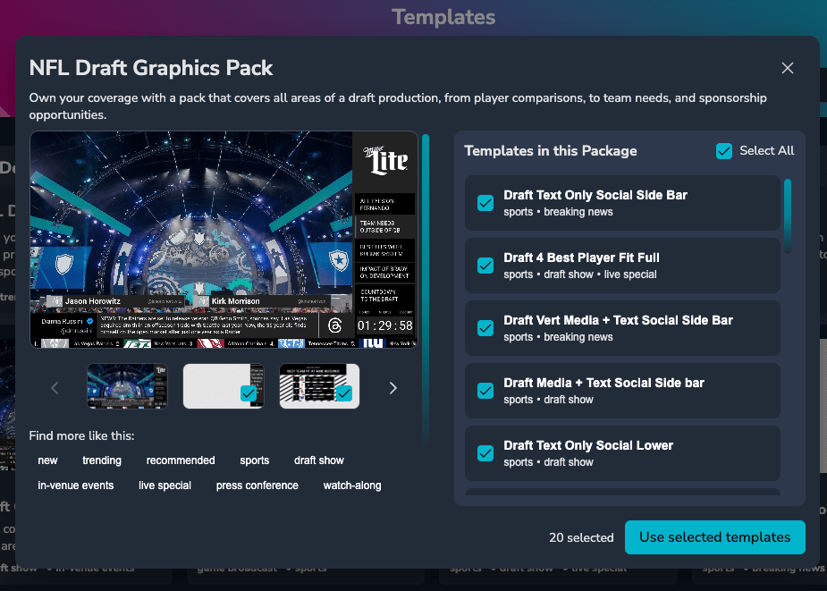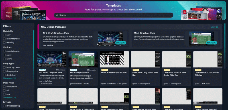 Moving forward, we’ll be adding more templates, full graphic packages, and fresh creative ideas on a weekly cadence. Whether you need a new look for a playoff run or a specialized layout around a tentpole event, we’ll be constantly expanding the library to ensure you always have the latest looks to build a primetime show.